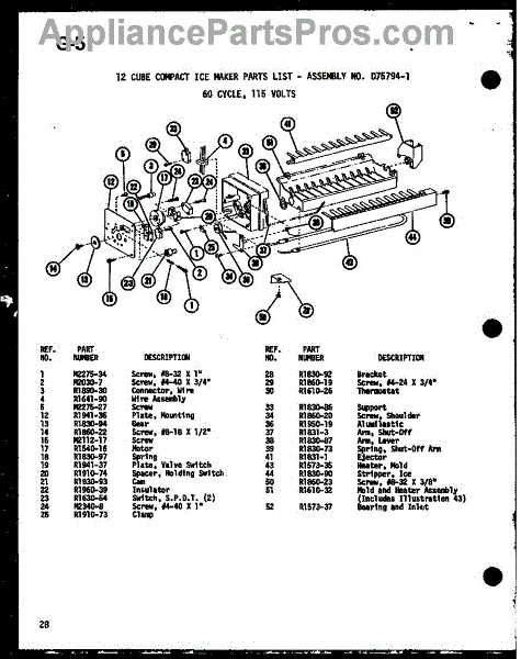 Parts for Amana SLDI22F-C / P7540019W A: 01 - 12 Cube Compact Ice Maker Parts