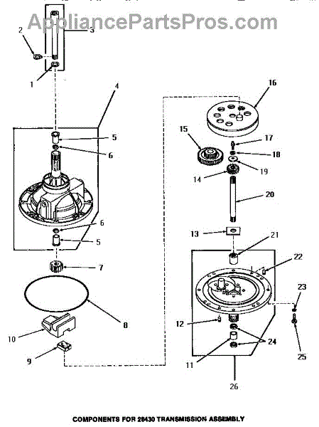 Parts for Amana HA4590: 01 - 28430 Transmission Assy Components Parts