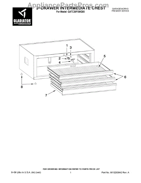 Parts for Whirlpool GATC26P3WG00: 01 - 3-Drawer Intermediate Chest Parts