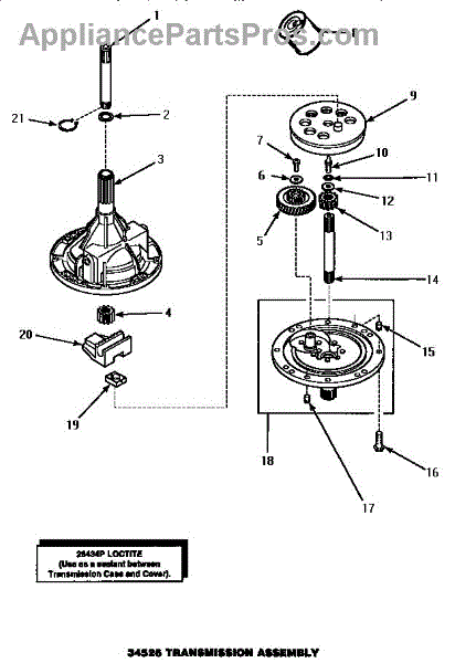 Parts for Amana AWM473W: 01 - 34526 Transmission Assy Parts