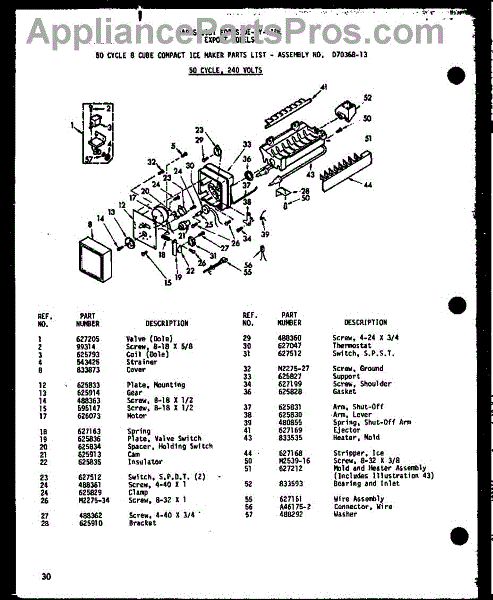 Parts for Amana SRI-22E-C / P7410011W C: 01 - 50 Cycle 8 Cube Compact Ice Maker Parts
