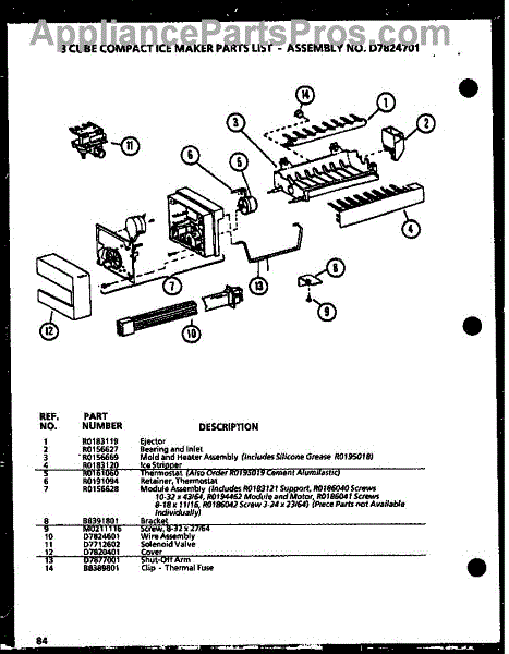 Parts for Amana 36268 / P1115703W: 01 - 8 Cube Compact Ice Maker Parts