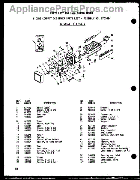 Parts for Amana BC20WA / P6023511W A: 01 - 8 Cube Compact Ice Maker Parts