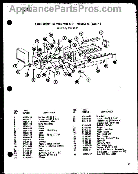 Parts for Amana BKI-20E / P7470207W: 01 - 8 Cube Compact Ice Maker Parts