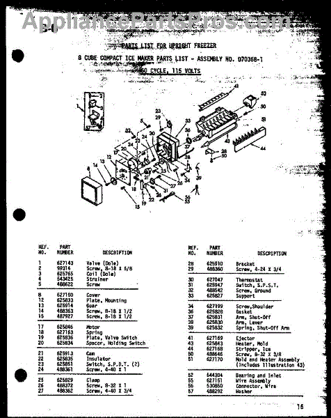 Parts for Amana ESUF16C-G / P6034562W G: 01 - 8 Cube Compact Ice Maker Parts