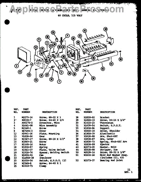 Parts for Amana SLI22F-A / P7540012W A: 01 - 8 Cube Compact Ice Maker Parts