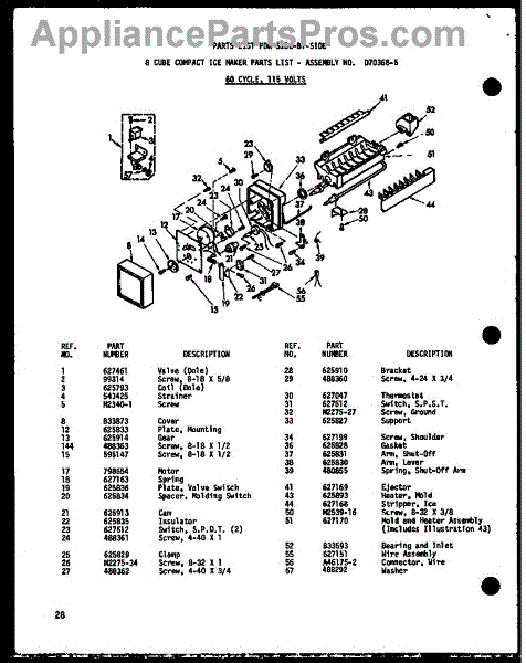 Parts for Amana SP19B-L / P7332046W L: 01 - 8 Cube Compact Ice Maker Parts