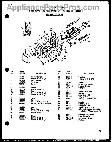 • Works with the ice maker's motor/gear assembly to advance cubes into the bin.