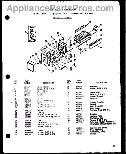 • Works with the ice maker's motor/gear assembly to advance cubes into the bin.