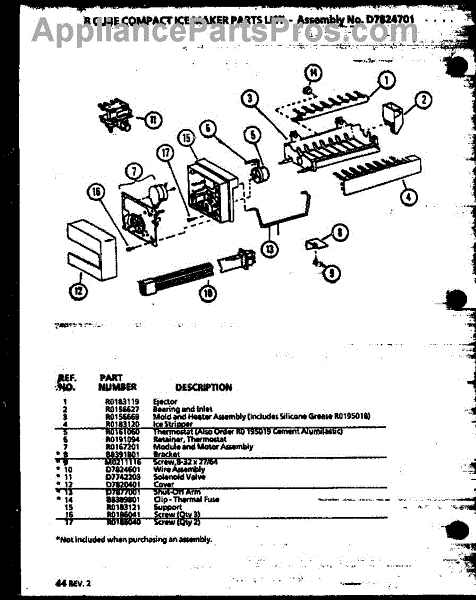 • Works with the ice maker's motor/gear assembly to advance cubes into the bin.