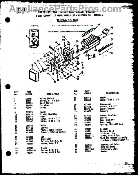 Parts for Amana UF22C / P6034572W: 01 - 8 Cube Compact Ice Maker Parts