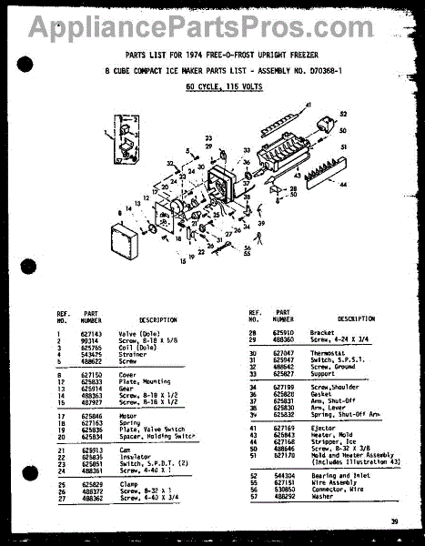 Parts for Amana UF16K-A / P6025040W A: 01 - 8 Cubecompact Ice Maker Parts