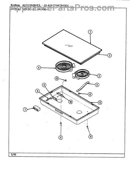 This terminal block provides an insulated, secure junction for incoming power or harness leads inside the appliance. Replacing a cracked, loose, or heat-damaged block restores a safe, reliable connection and helps prevent arcing or intermittent power.