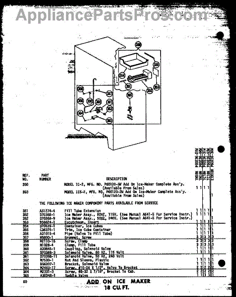 Parts for Amana TM18N-C / P6023629W C: 01 - Add On Ice Maker 18 Cu. Ft. Parts