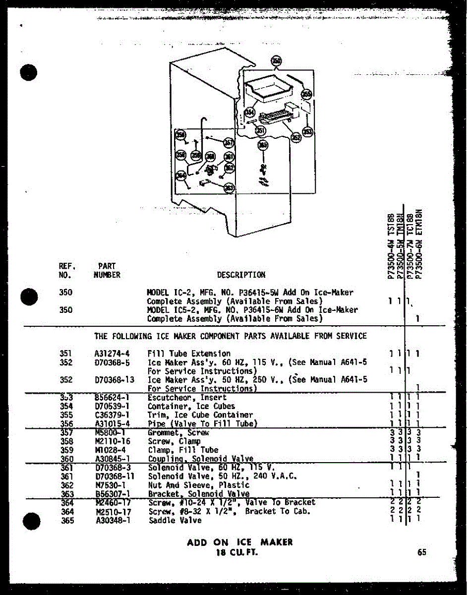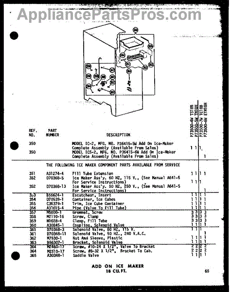 Parts for Amana TS18B-G / P7350004W G: 01 - Add On Ice Maker 18 Cu. Ft. Parts