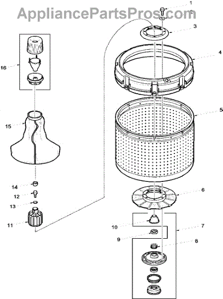 Parts for Amana LWS34AW / PLWS34AW: 01 - Agitator, Drive Bell, Washtub And Hub Parts