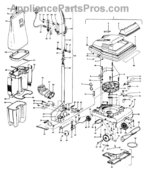 Parts for Hoover C1091---: 01 - Agitator, Handle, Mainbody, Outerbag Parts