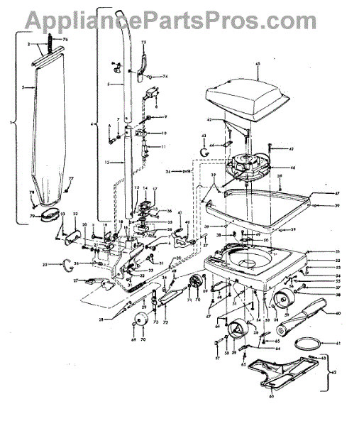 Parts for Hoover C1121---: 01 - Agitator, Handle, Mainbody, Outerbag Parts