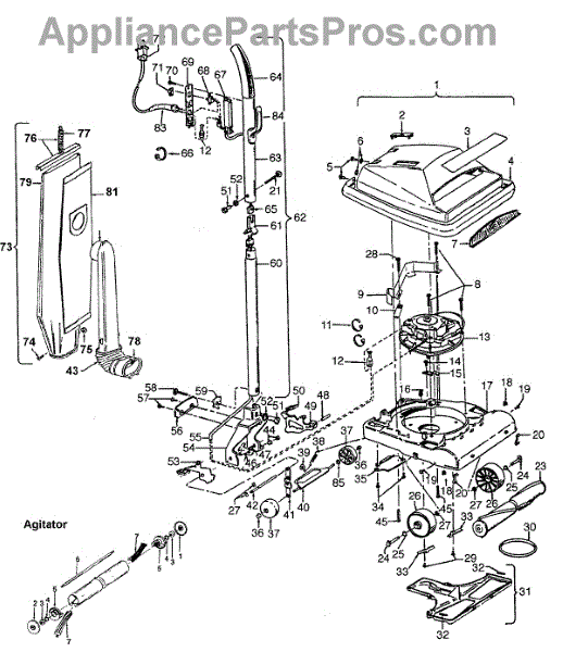 Parts for Hoover C1515---: 01 - Agitator, Handle, Mainbody, Outerbag Parts