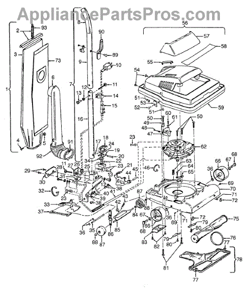 Parts for Hoover C1627---: 01 - Agitator, Handle, Mainbody, Outerbag Parts