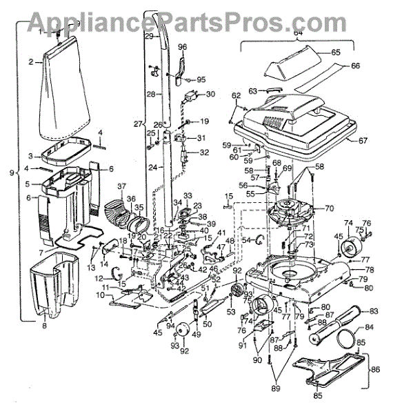 Parts for Hoover C1629---: 01 - Agitator, Handle, Mainbody, Outerbag Parts