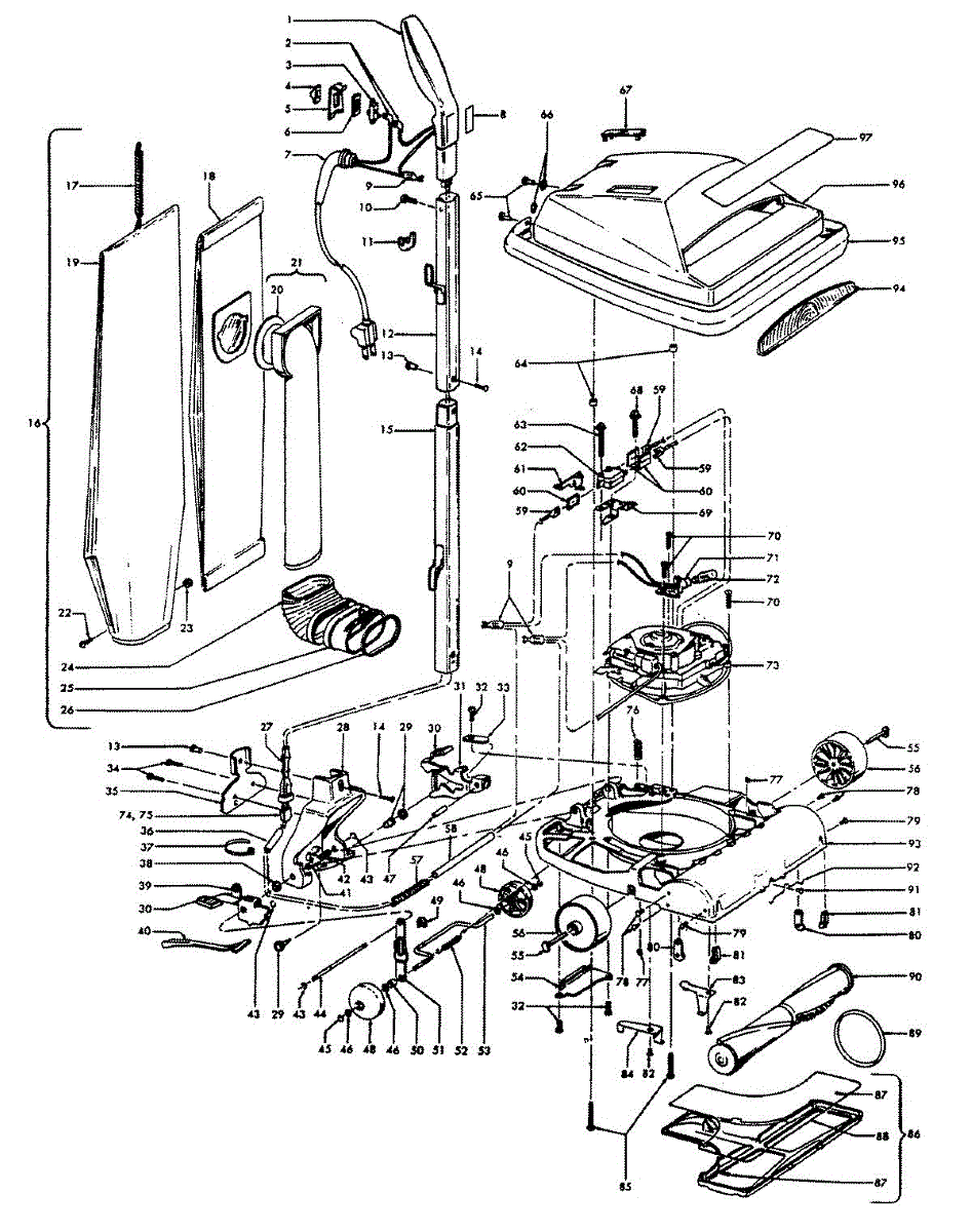 Parts for Hoover U4115---: 01 - Agitator, Handle, Mainbody, Outerbag Parts