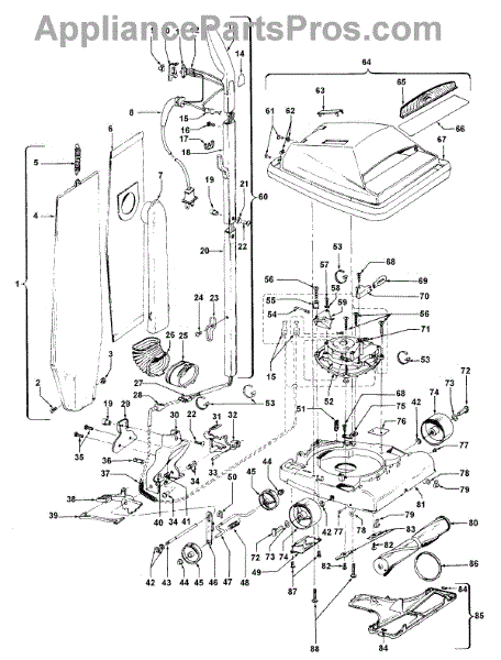 Parts for Hoover U4729900: 01 - Agitator, Handle, Mainbody, Outerbag Parts