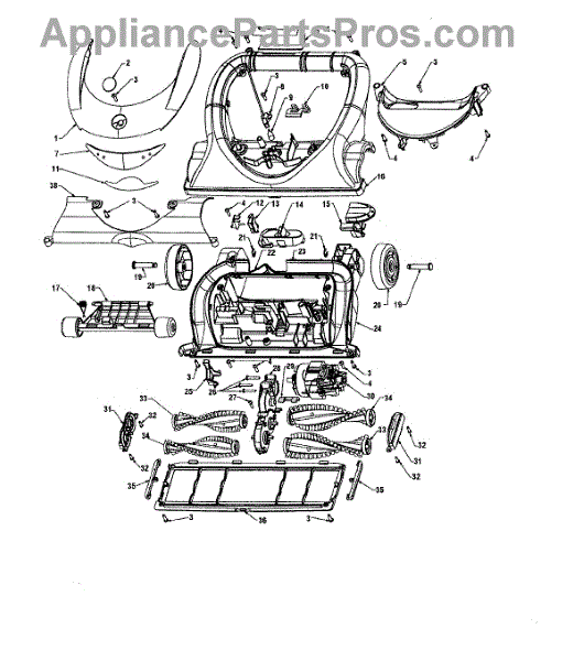 Parts for Hoover U8125960: 01 - Agitator, Hood Parts