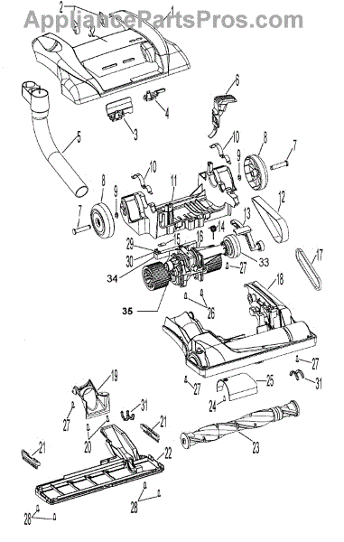 Parts for Hoover U6476900: 01 - Agitator, Mainbody, Hood Parts