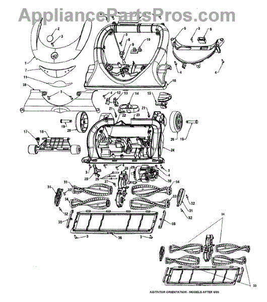 Parts for Hoover U8148900: 01 - Agitator, Mainbody, Hood Parts