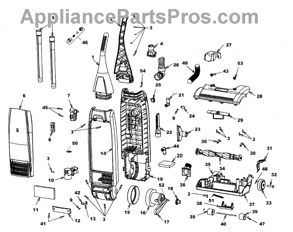 Parts for Hoover U5014900: 01 - Agitator, Motor, Handle, Mainbody Parts