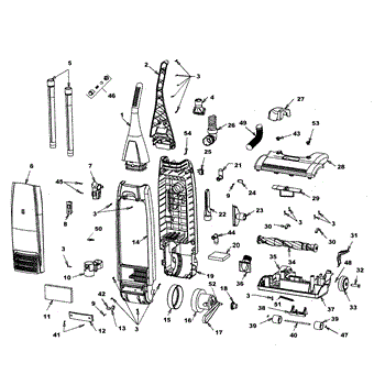 Parts for Hoover U5018900: 01 - Agitator, Motor, Handle, Mainbody Parts