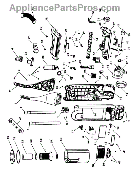 Parts for Hoover U5019900: 01 - Agitator, Motor, Handle, Mainbody Parts