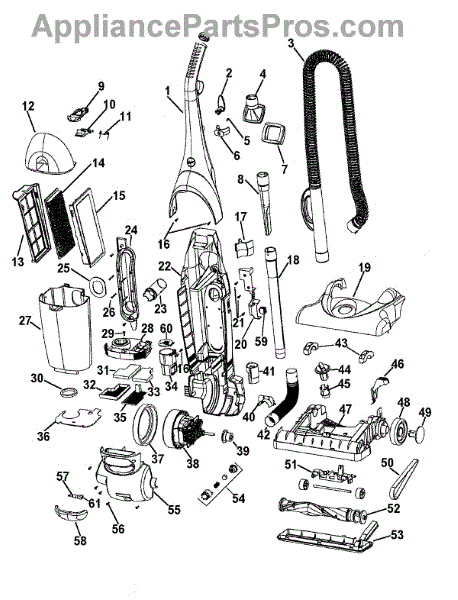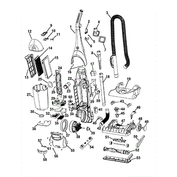 Parts for Hoover U5023900: 01 - Agitator, Motor, Handle, Mainbody Parts