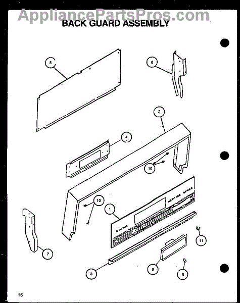 Parts for Amana RLS343UCO / P1141104N W: 01 - Back Guard Assy Parts