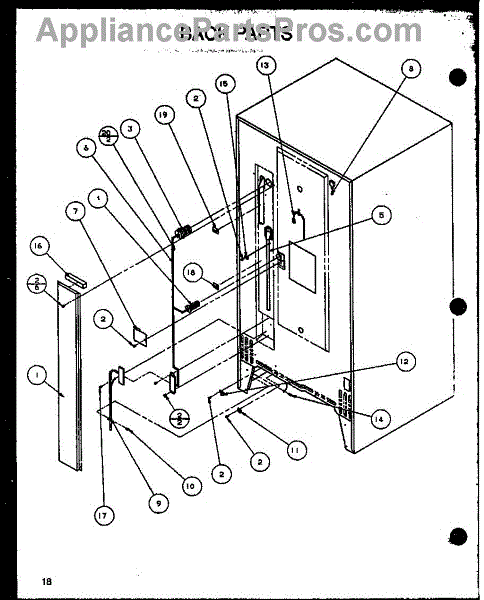 Parts for Amana 86855 / P1116907W E: 01 - Back Parts