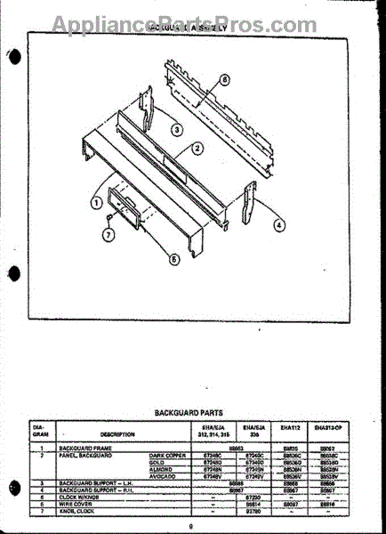 Parts for Amana EHA353: 01 - Backguard Assy Parts