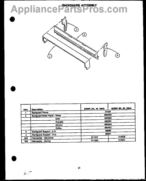 Parts for Amana GAK39AA: 01 - Backguard Assy Parts