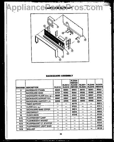 Parts for Amana RMD339: 01 - Backguard Assy Parts