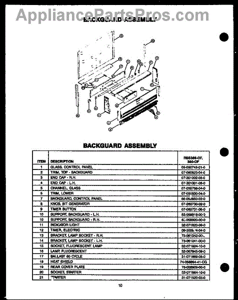 Parts for Amana RSS369-OF / RSS3690OF: 01 - Backguard Assy Parts