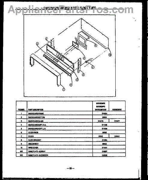 Parts for Amana SBE26FB: 01 - Backguard Assy With Clock Timer Parts