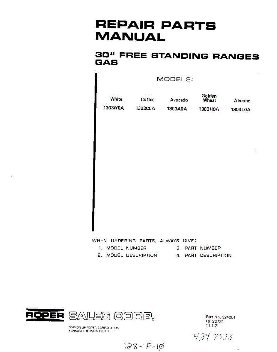 Parts for Whirlpool 1303W0A: 01 - Backguard Parts
