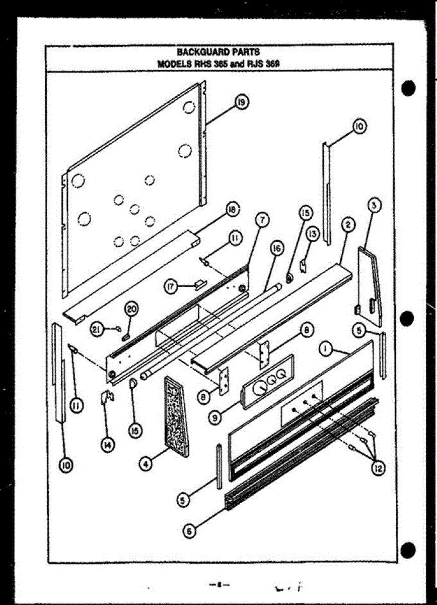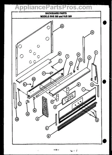 Parts for Amana RHS365: 01 - Backguard Parts Models Rhs365 & Rjs 369 Parts
