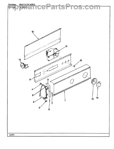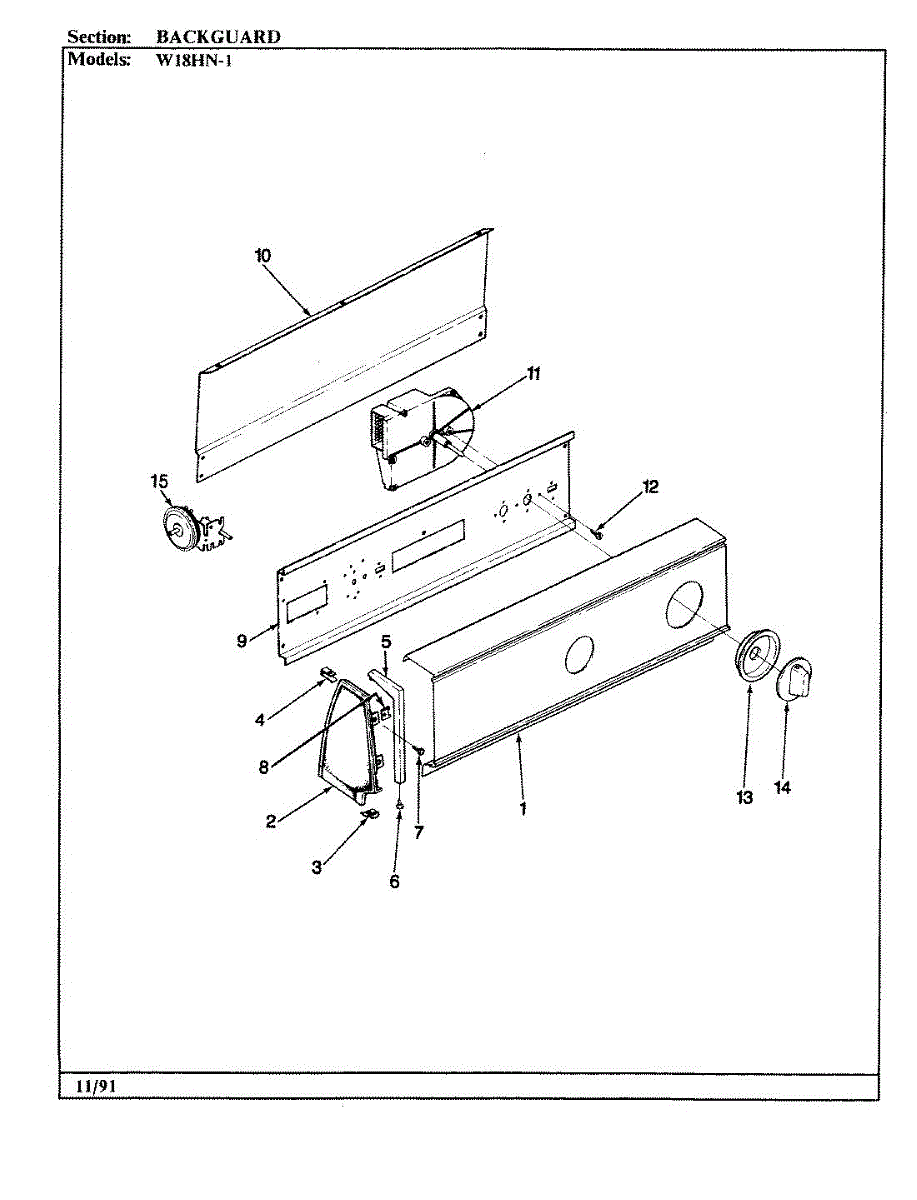 Parts for Magic Chef W18HY1: 01 - Backguard (Rev. D) Parts