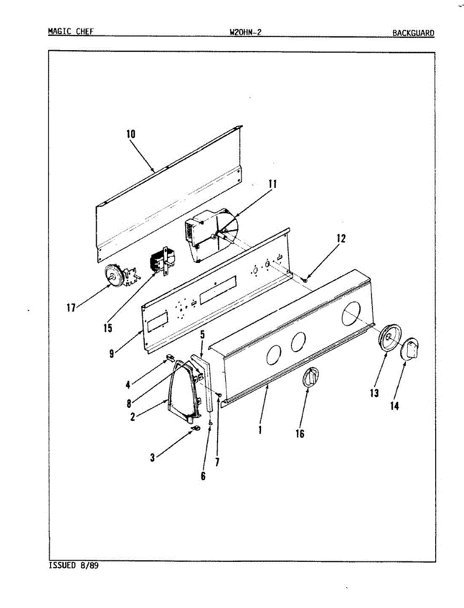 Parts for Magic Chef W20HA2: 01 - Backguard (Rev. A-D) Parts