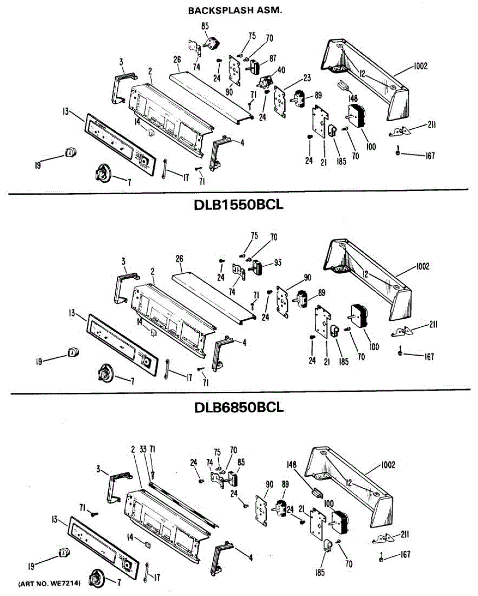 Parts for Ge DLB1550BCL: 01 - Backsplash Asm. Parts