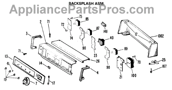 Parts for Ge DLB2880DEL: 01 - Backsplash Asm. Parts