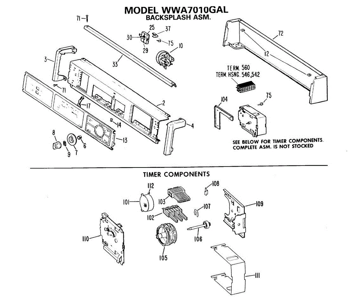 Washer timer mounting bracket secures the timer control to the console panel. Replace if bracket is bent, cracked, or broken causing timer misalignment.
