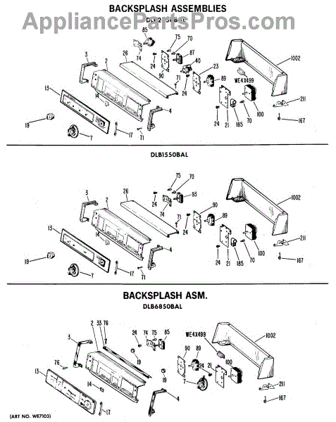 Parts for Ge DLB2650BAL: 01 - Backsplash Assemblies Parts