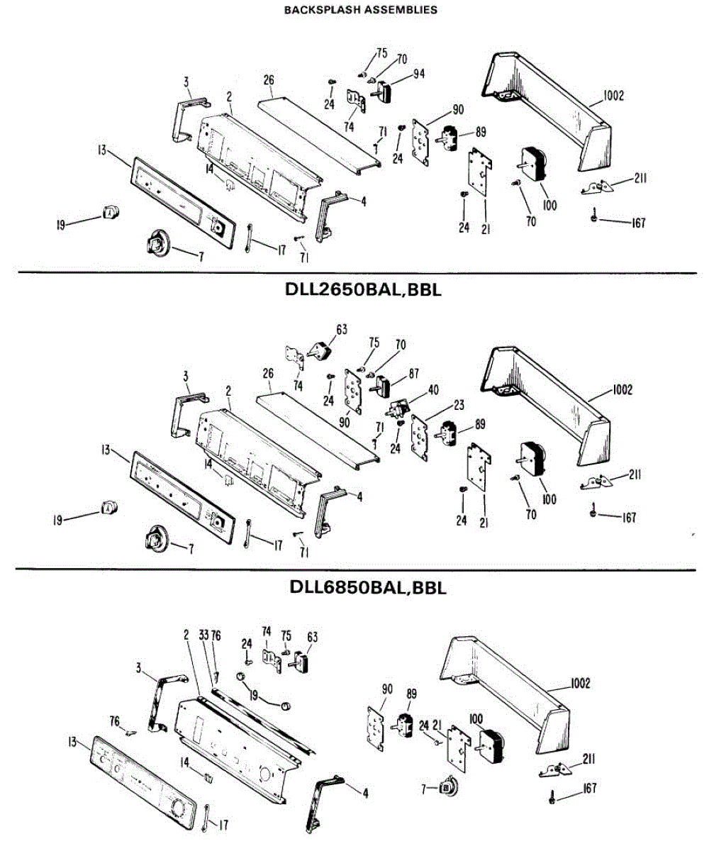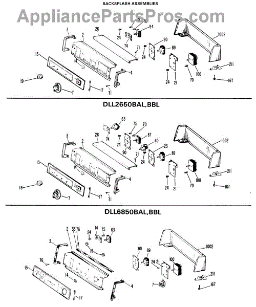 Parts for Ge DLL1550BBL: 01 - Backsplash Assemblies Parts